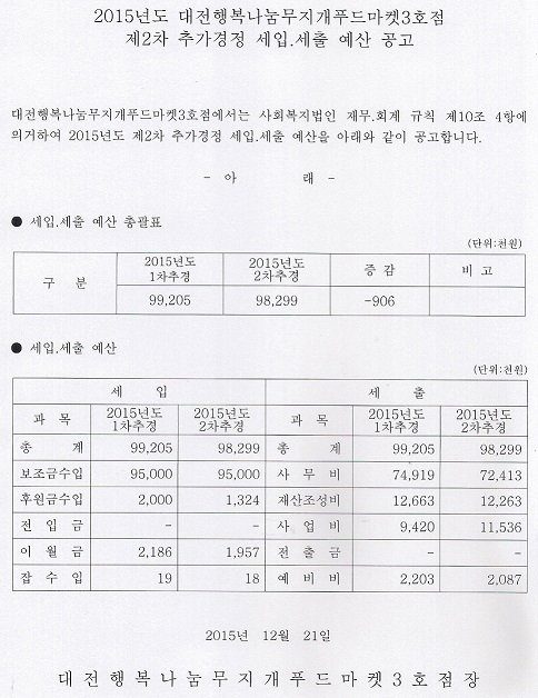 19-03-28 11:24 대전행복나눔무지개푸드마켓3호점 2015년도 제2차 추가경정 세입.세출 예산 공고 페이지 정보 작성자 성우보육원 댓글 0건 조회 5,364회 본문 대전행복나눔무지개푸드마켓3호점 2015년도 제2차 추가경정 세입.세출 예산 공고 목록 댓글목록 댓글목록 등록된 댓글이 없습니다.