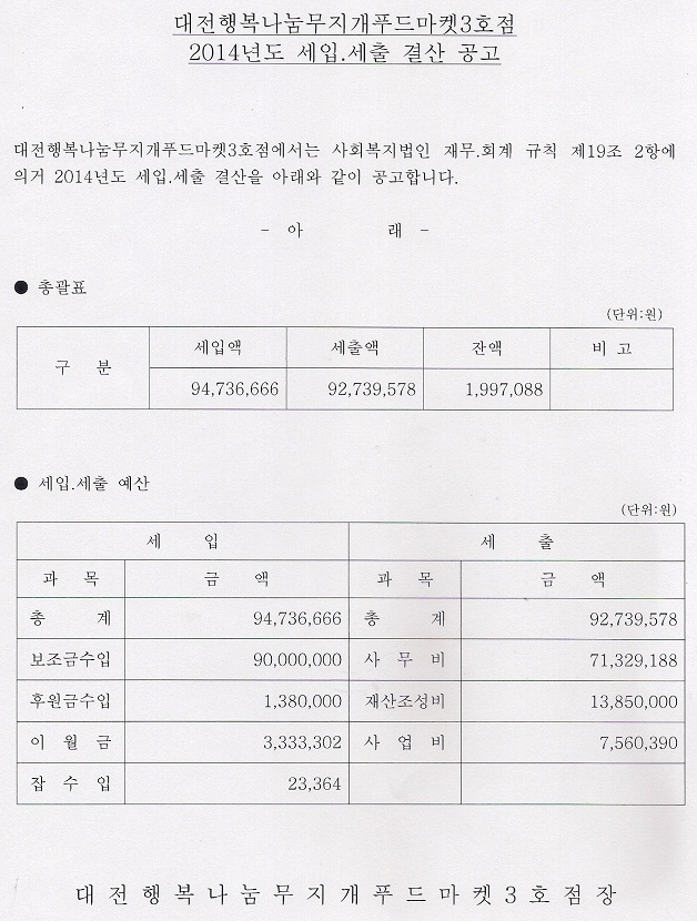19-03-28 11:19 대전행복나눔무지개푸드마켓3호점 2014년도 세입.세출 결산공고 페이지 정보 작성자 성우보육원 댓글 0건 조회 5,630회 본문 대전행복나눔무지개푸드마켓3호점 2014년도 세입.세출 결산공고 목록 댓글목록 댓글목록 등록된 댓글이 없습니다.