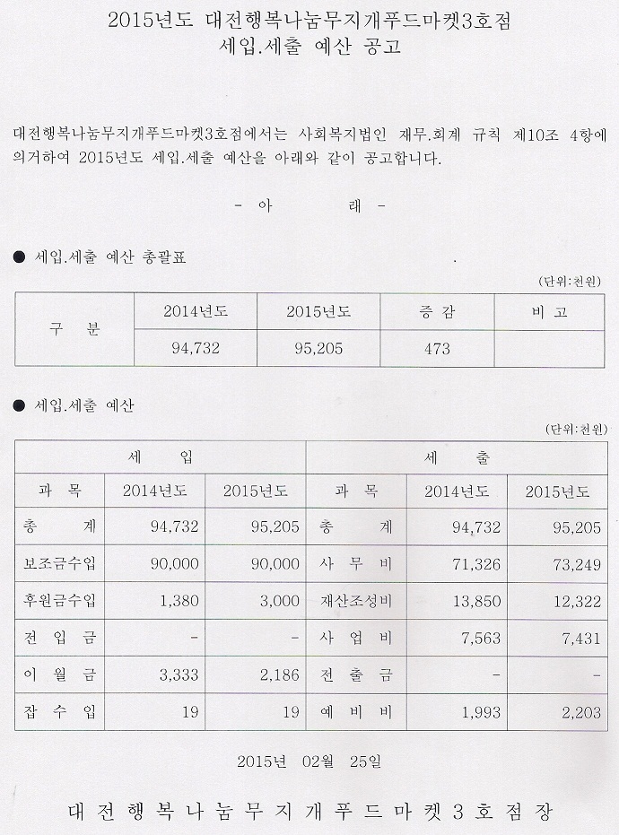 대전행복나눔무지개푸드마켓3호점 2015년도 세입.세출 예산 공고 작성일 19-03-28 11:04 페이지 정보 작성자성우보육원 조회 5,271회 댓글 0건 본문 대전행복나눔무지개푸드마켓3호점 2015년도 세입.세출 에산 공고 댓글목록 댓글목록 등록된 댓글이 없습니다.