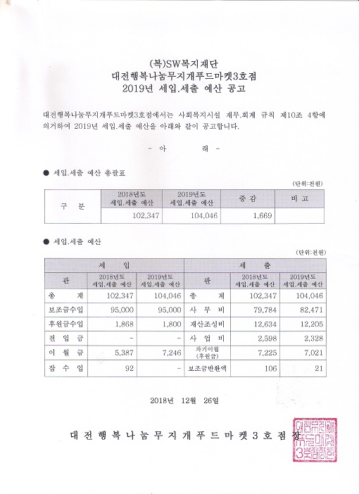 19-03-28 11:48 2019년도 대전행복나눔무지개푸드마켓3호점 세입.세출 예산공고 페이지 정보 작성자 성우보육원 댓글 0건 조회 5,608회 본문 2019년도 대전행복나눔무지개푸드마켓3호점 세입.세출 예산공고 목록 댓글목록 댓글목록 등록된 댓글이 없습니다.