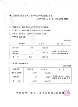 19-03-28 11:43 대전행복나눔무지개푸드마켓3호점 2017년 기부식품 모집 및 제공실적 공고 페이지 정보 작성자 성우보육원 댓글 0건 조회 5,684회 본문 대전행복나눔무지개푸드마켓3호점 2017년 기부식품 모집 및 제공실적 공고 목록 댓글목록 댓글목록 등록된 댓글이 없습니다.