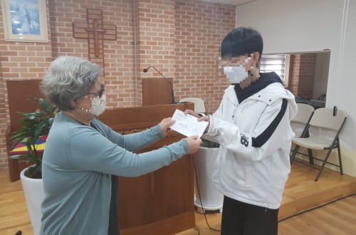 2021년 설날을 맞이하여 입학생 선물(가방) 증정 및 표어 포스터 부문 시상식이 있었습…