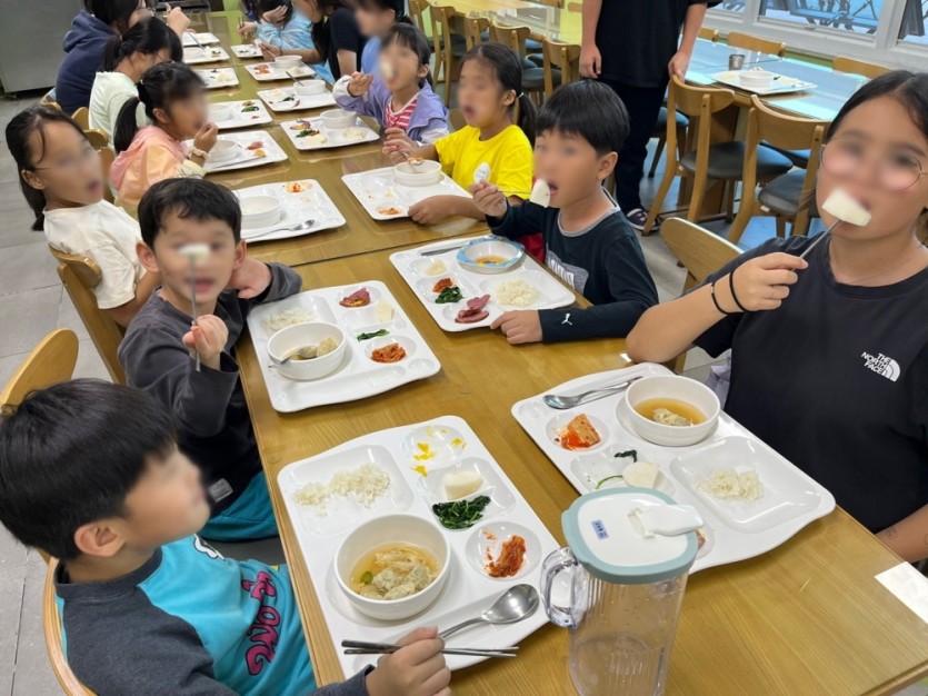 아이들은 식사 후 후식으로 달콤한 배를 먹으며 아직 오지 않은 추석에 대한 설레임으로 가득 찬 모습 보였습니다!