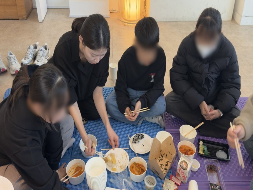 오전 활동을 마친 후에는 출출한 아이들을 위해 초밥, 떡볶이, 피자 등 아이들이 좋아하는 메뉴를 준비해주셔서