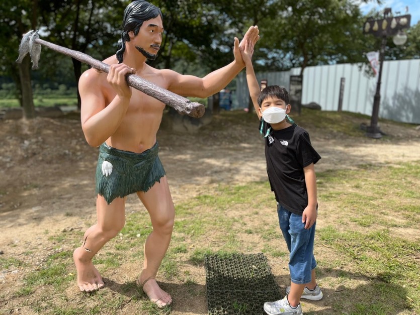 넓은 초록 들판에 구석기 시대 사람들이 살았던 움막들을 볼 수 있었고