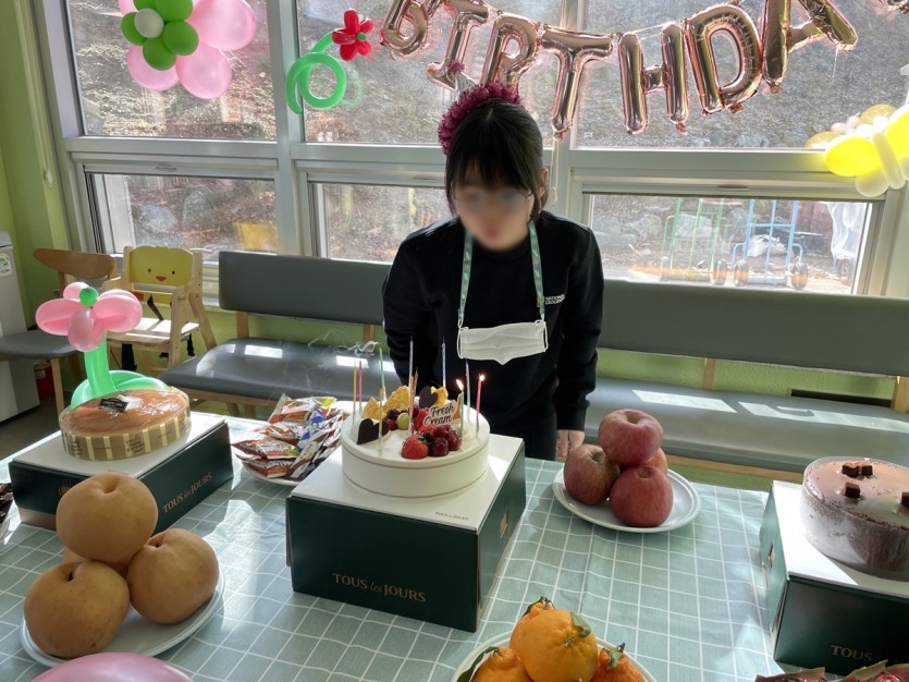 생일을 맞이한 아동을 위해 다같이 생일 축하 노래를 부르며 축하해 주었습니다.