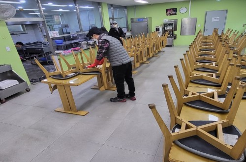 대덕대학교 봉사팀 내방하셔서 원내 식당 청소 진행해주셨습니다.~겨울비가 촉촉하…