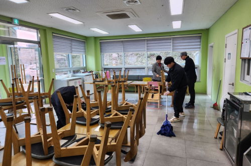 대덕대학교 봉사팀 내방하셔서 성우보육원의 식당 청소 진행해주셨습니다~아이들이 매 끼니 함께 모여…