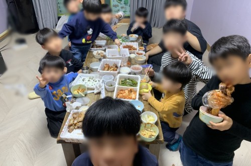한빛라이팅에서 성우 아동들에게 맛있는 족발과 보쌈을 후원해 주셨습니다.