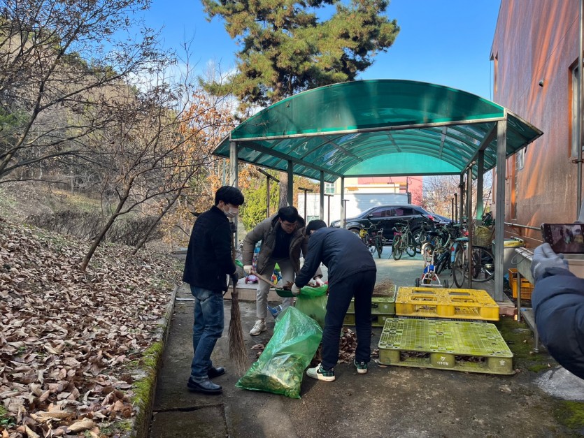 봉사자분들께서 숙소동 옆 자전거 거치대를 깨끗하게 정리해 주셨고