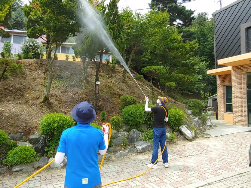 원내 및 주변 나무 등을 꼼꼼히 소독하여 아동들이 더운 여름철에 많이 발생하는 해충으로부터 안전하게 생활할 수 있도록 해주셨답니다.