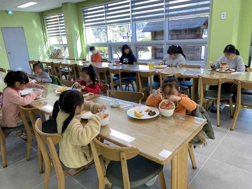 아이들 감사한 마음으로 맛있는 순대 점심 식사 시간에 함께 나누어 먹었습니다.