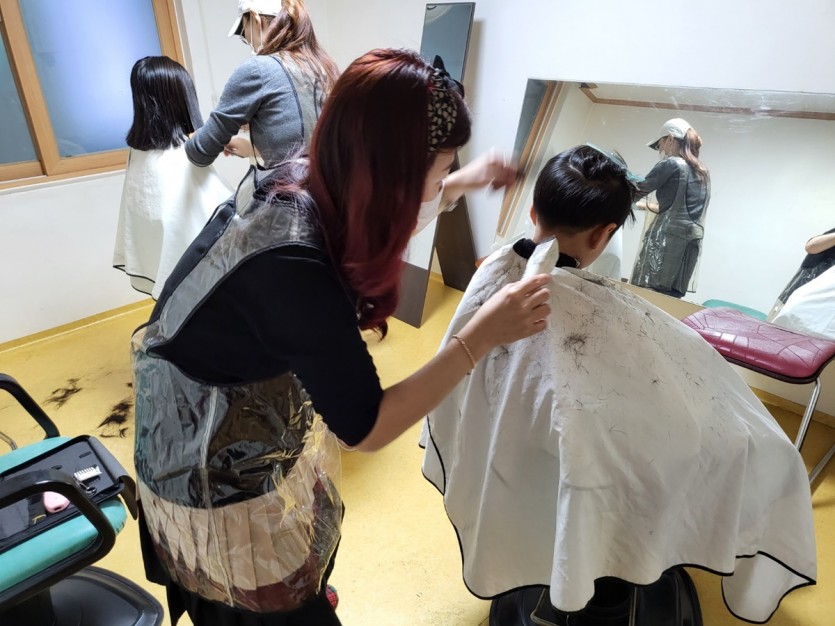 아동들 머리를 깔끔하고 예쁘고 멋진 모습으로 미용해주셔서 아동들 모두 미용 후 만족해하는 모습 보였습니다.♡