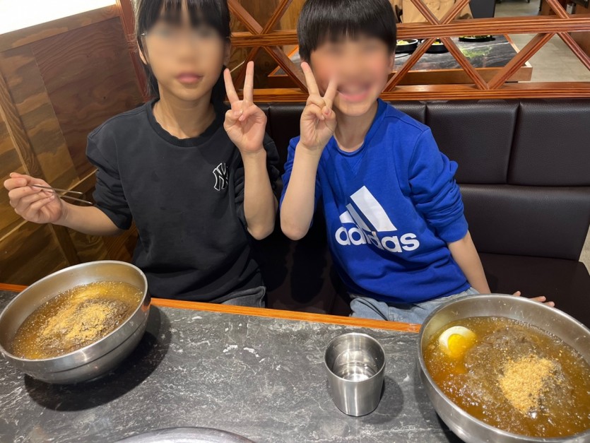 아이들이 좋아하는 달콤하고 고소한 숯불갈비와 시원한 냉면, 맛있는 된장찌개까지