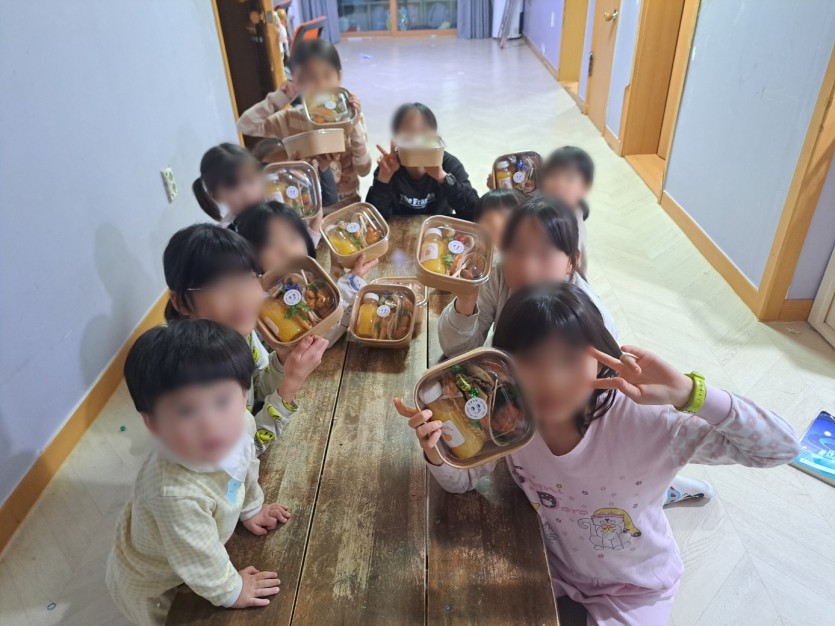 르엘키친에서 보내주신 맛있고 건강한 샌드위치 도시락이 우리 아이들에게 전달되었습니다!!