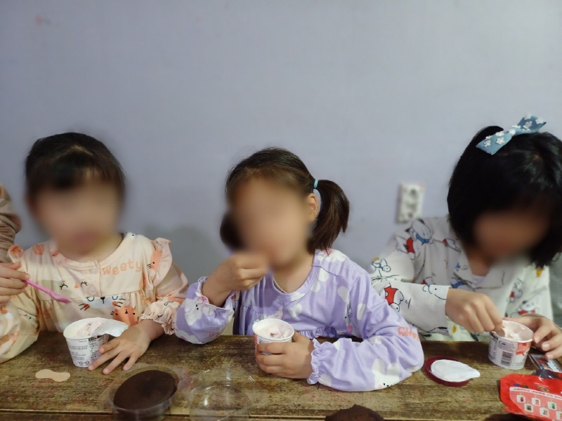아이들은 간식이 너무 맛있다며 후원자 분들께 감사하는 시간을 가지며