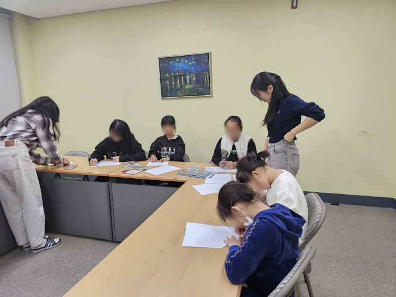 2024.10.31 2024.10.31 초등학생~중학생 아동 대상 카이스트 실버라이닝 봉사자 4분과 영어 학습 봉사 진행 되었습니다.