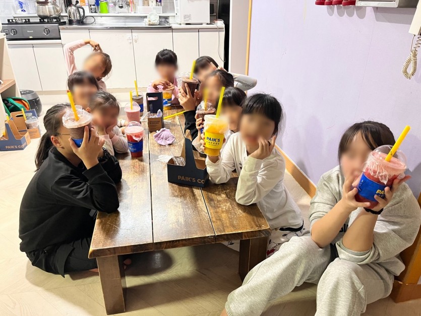 아이들 모두 원하는 음료를 마시며 후원자님께 대한