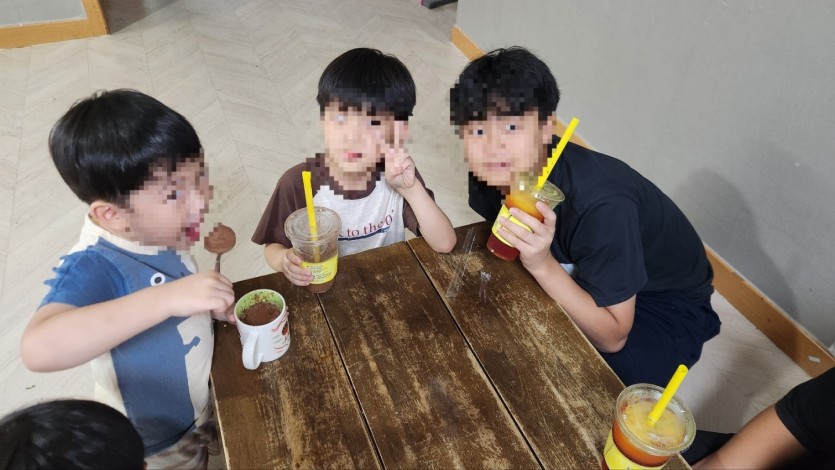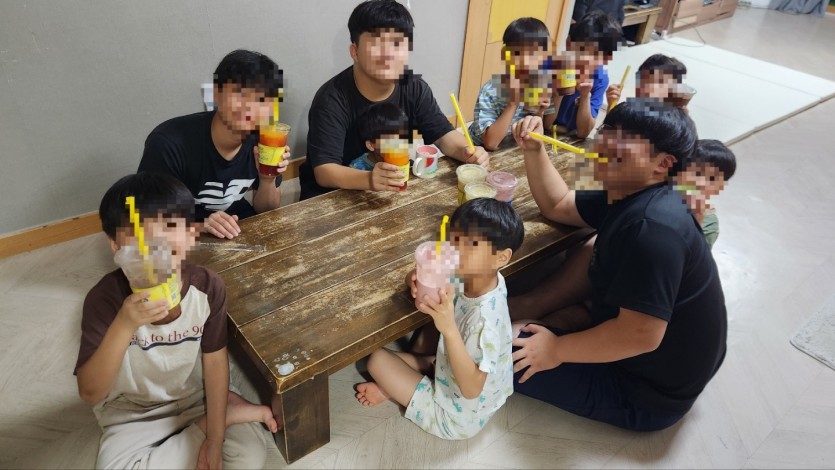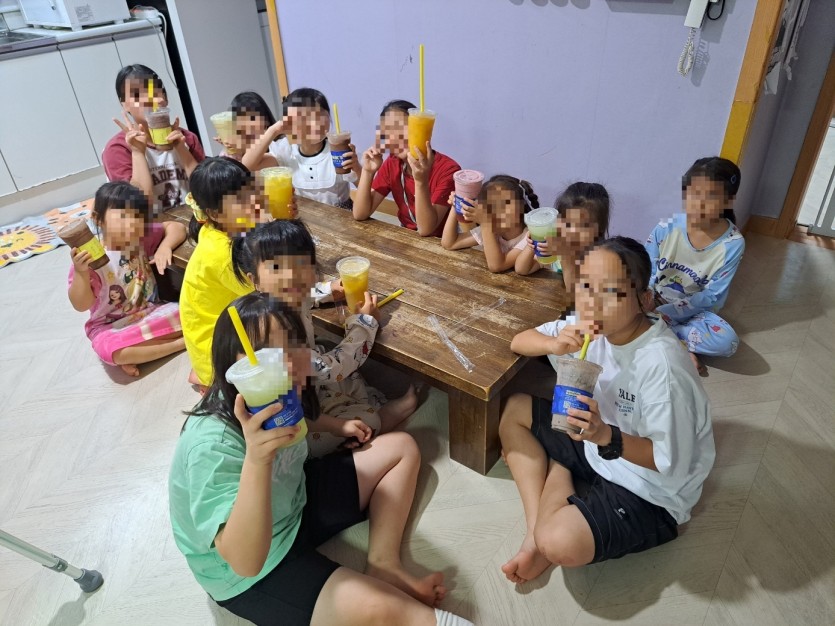 아이들이 감사한 마음으로 맛있는 음료를 마실 수 있었습니다~~
